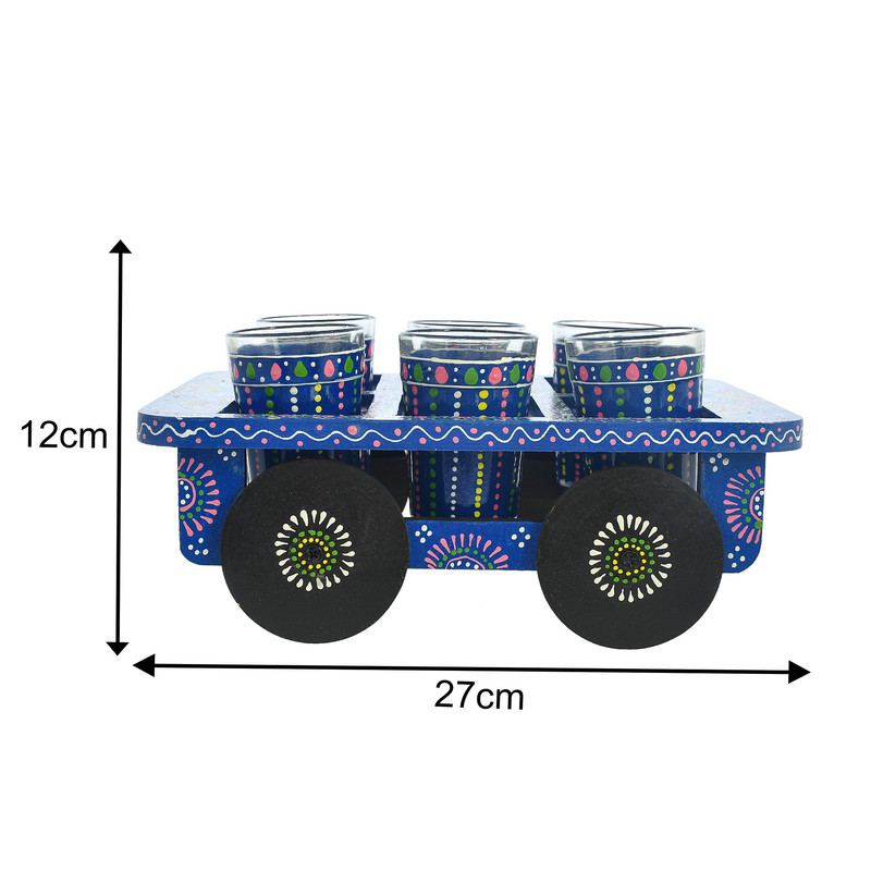 HandPainted Alluminium Tea Kettle with 6 Glasses and Wooden Tray For Home Decor , Tea Party , Serving
