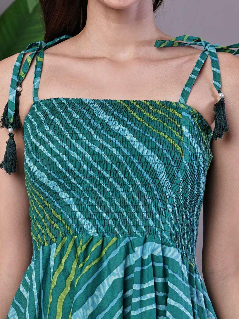 Be the first to review “Women’s Leheriya Asymmetrical Hem Smocked A-Line Dress Midi Dresses”